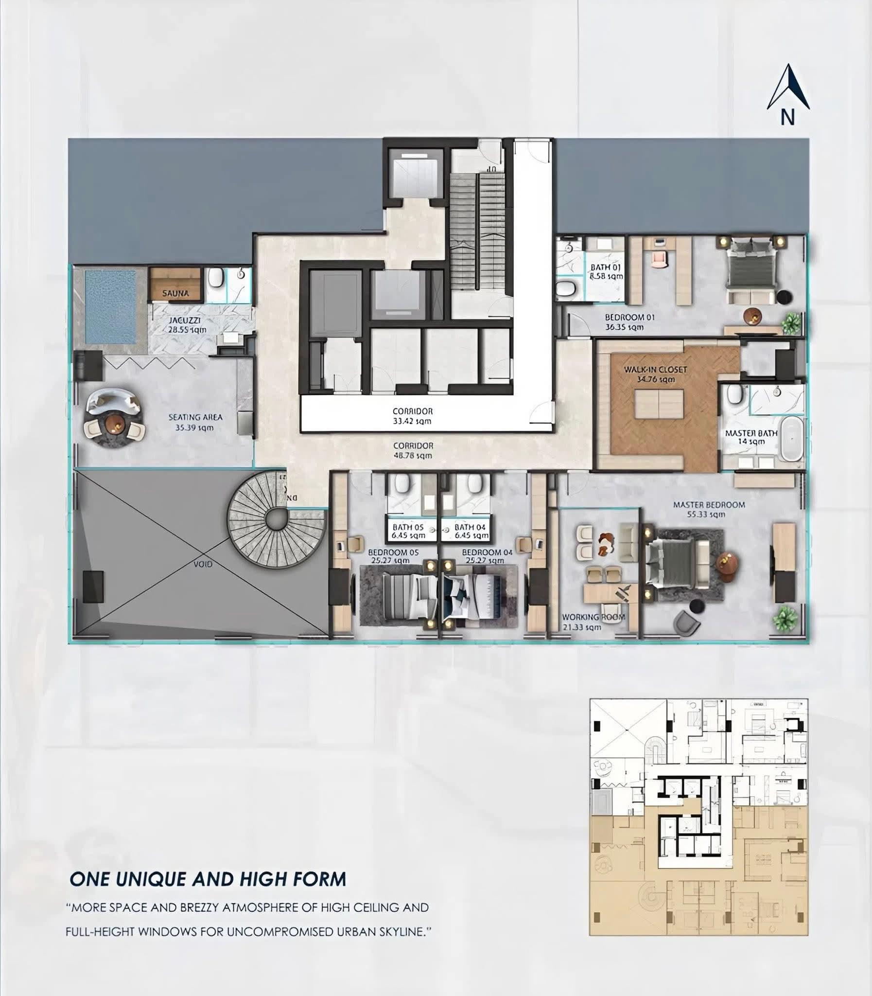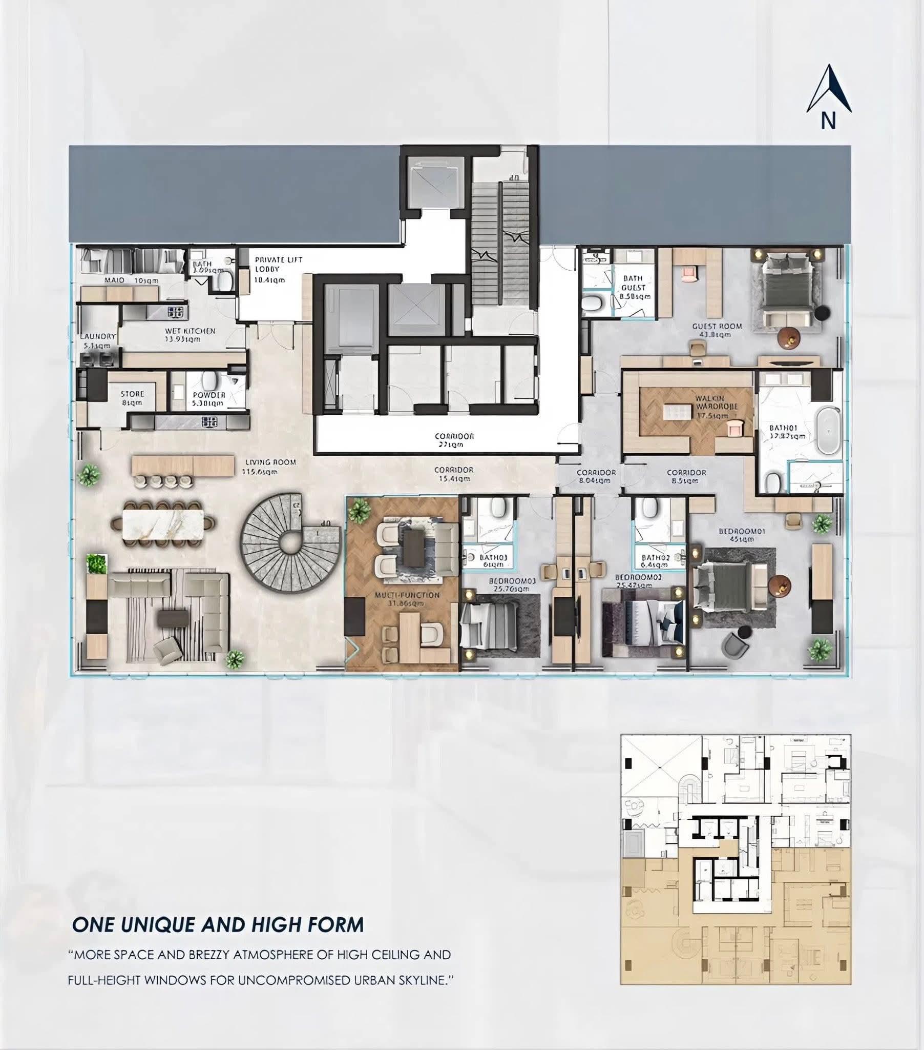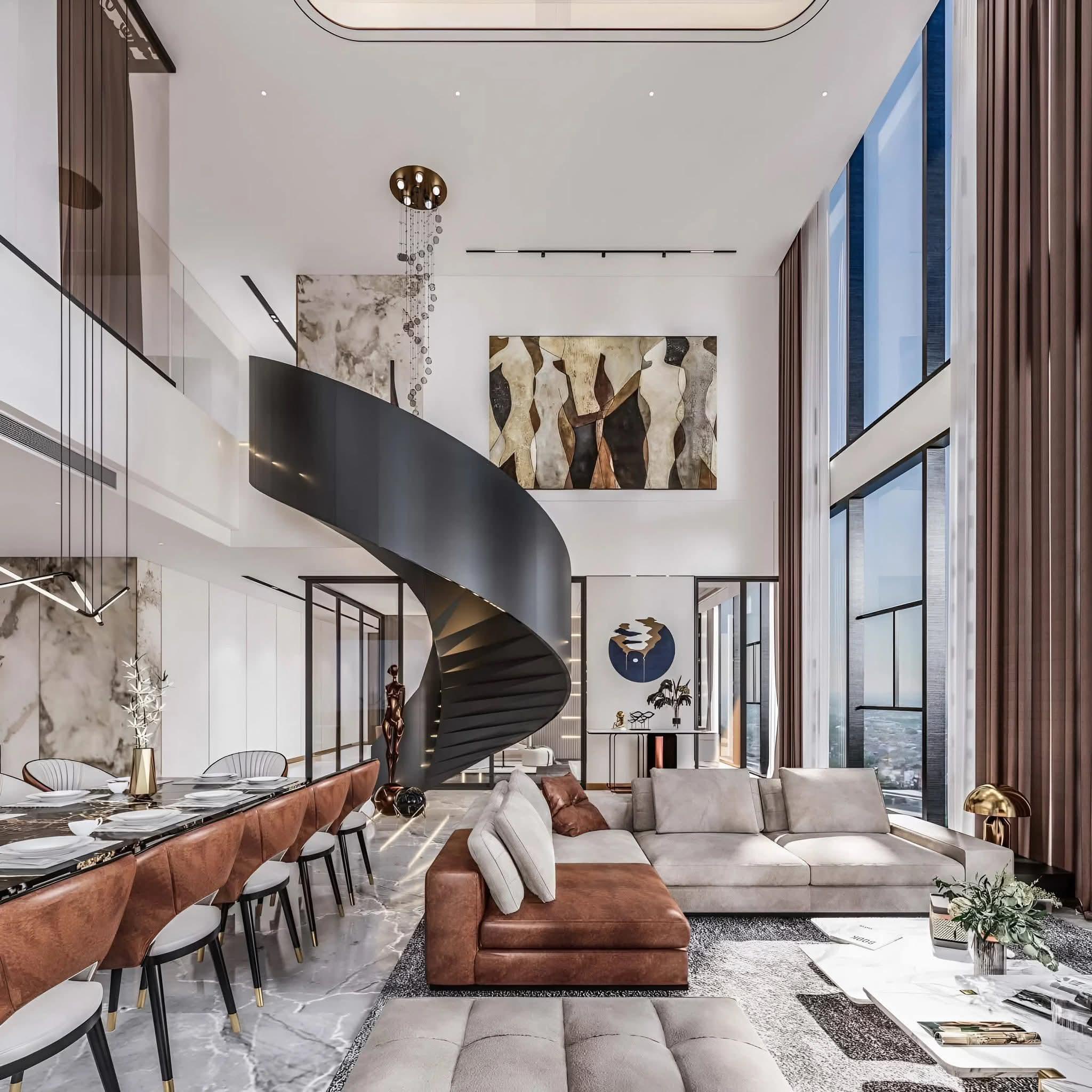 🔥 位于Boeung Keng Kang 1 区的独一无二顶层豪华公寓,室内设计奢华精致,坐落于第46–47层。